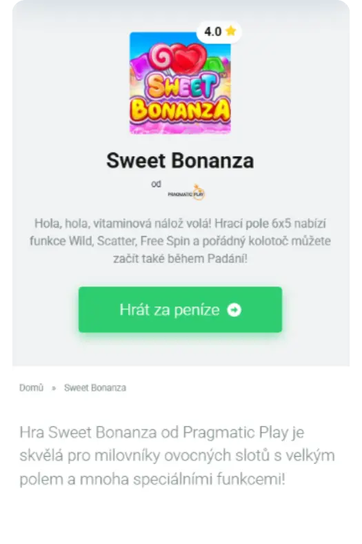 Objevte Sweet Bonanza CZ! Hrajte demo zdarma nebo o skutečné peníze s RTP 96,51 %, tumble mechanikou a multiplikátory až 100x. Získejte až 21 175násobek sázky!